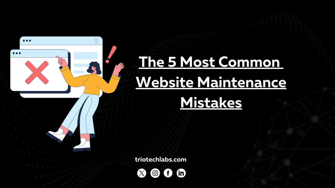 Triotech Labs No CommentsAvoid critical website maintenance mistakes that harm performance, security, and SEO. Learn expert tips from TRIOTECH LABS to keep your site running smoothly.